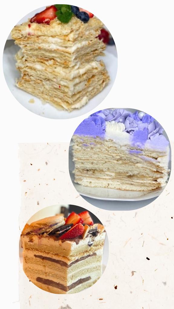 * Красный бархат с сырно-сливочным кремом и малиновым конфи(можно заменить на клубничный соус,тоже вкусно) * Ванильный с пломбирным кремом,клубничным конфи и бананом в карамели/бананом * Морковный с апельсиновым курдом,солеными орешками в сливочной карамели и сырно-сметанным кремом * Молочная девочка с клубничным пюре или малиновым * Сникерс с шоколадным муссом и соленым арахисом в карамели с крем чиз на сливках * Рафаэлло с кокосовым влажным бисквитом,кокосовым ганашем и миндальной крошкой